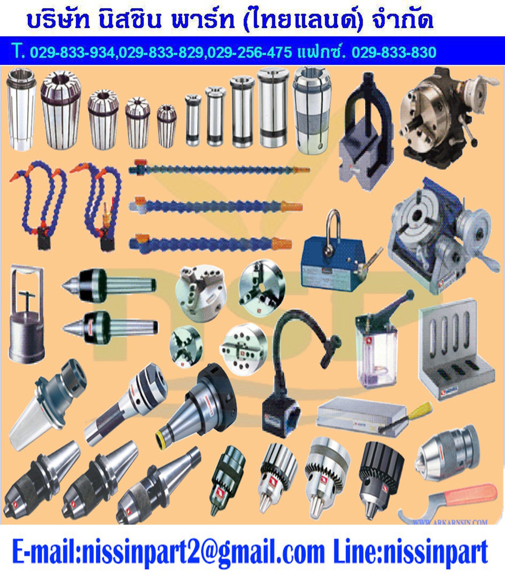 ดอกสว่านDrill ดอกเอ็นมิลEnd Mills ดอกต๊าปHSS Taps ดอกริมเมอร์Reamer เม็ดมีดCarbideInsert มีดกลึง เกรด 1900 ดอกริมเมอร์ตัวที Chassis Reamer Jaw Pullers สามขา ดอกต๊าป ด้ามดายต๊าป Center Drill, Spotting Drill ตัวตอกตัวเลข0-9 ตัวตอกตัวอักษรA-Z ตัวตอกตรง ตัวตอกกลับ ดอกโอซอ