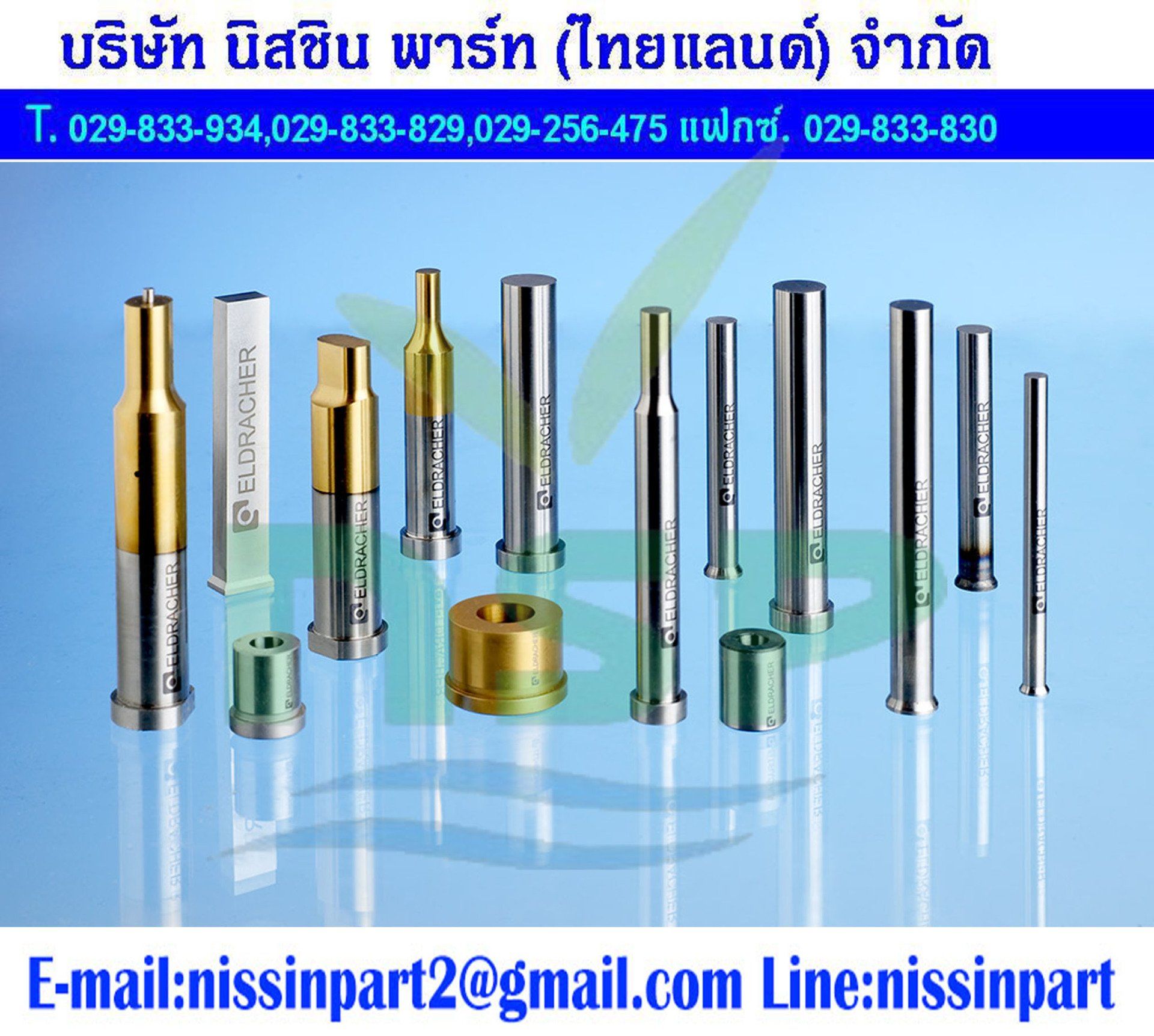พั้นตรง Straight Punches SPT SHT SPHT พั้นสองตอน Shoulder Punches SP SH SPH ไพลอตพั้น Pilot Punches PPSA PPLA PPXA ไดมีบ่า Button Dies Head Type BHA BHB BHC BHD BHE ไดตรง ButtonStright Type BSA BSB BSB BSD BSE สปูลรีเทนเนอร์ Spool Retainers